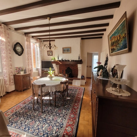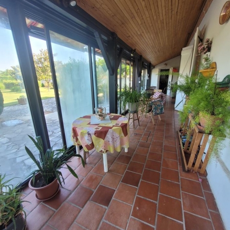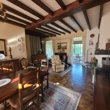 2ème partie : grand séjour de 36 m² avec insert, ouvrant sur une véranda de 30 m², cuisine indépendante de 10 m², buanderie, cellier, WC et salle de bains avec douche.