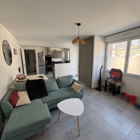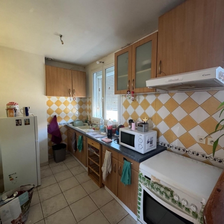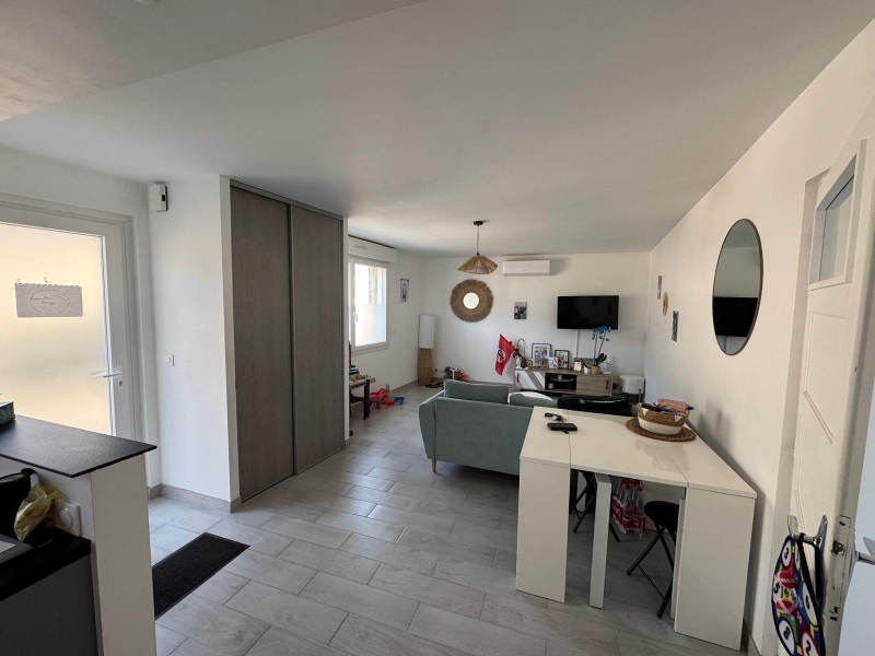 - Séjour carrelé : 27 m² avec cuisine ouverte